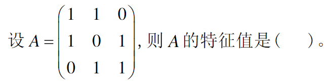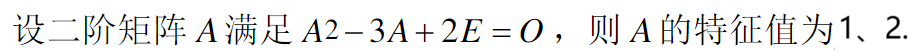 [单选题]下列说法不正确的是( ) A 因为特征向量是非零向量,所以它所对应的特征值非零 B 属于一个特征值的向量也许只有一个 C 一个特征向量只能属于一个特征值 。D 特征值为零的矩阵未必是零矩阵 |