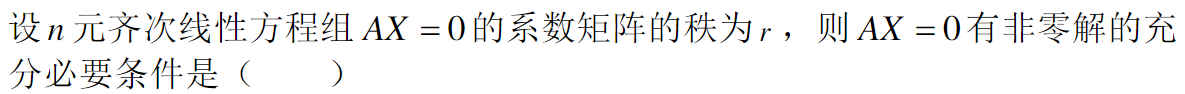 [单选题]设A 为 m×n矩阵,齐次线性方程组 AX = 0 仅有零解的充要条件为( ) A A 的列向量线性无关 B A 的行向量线性无关 C A的列向量线性相关 。D A 的行向量线性相关 。 |