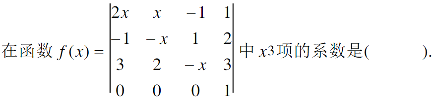 则D中第四行元素的余子式的和为 A -1 。B -2 。C -3 。D 0 。 |